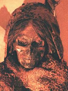 - Rekonstruktion eines weiblichen Tochäer-Skelettes - dieser östliche Indogermanenzweig spiegelt gut die anthroplogische Herkunft wider